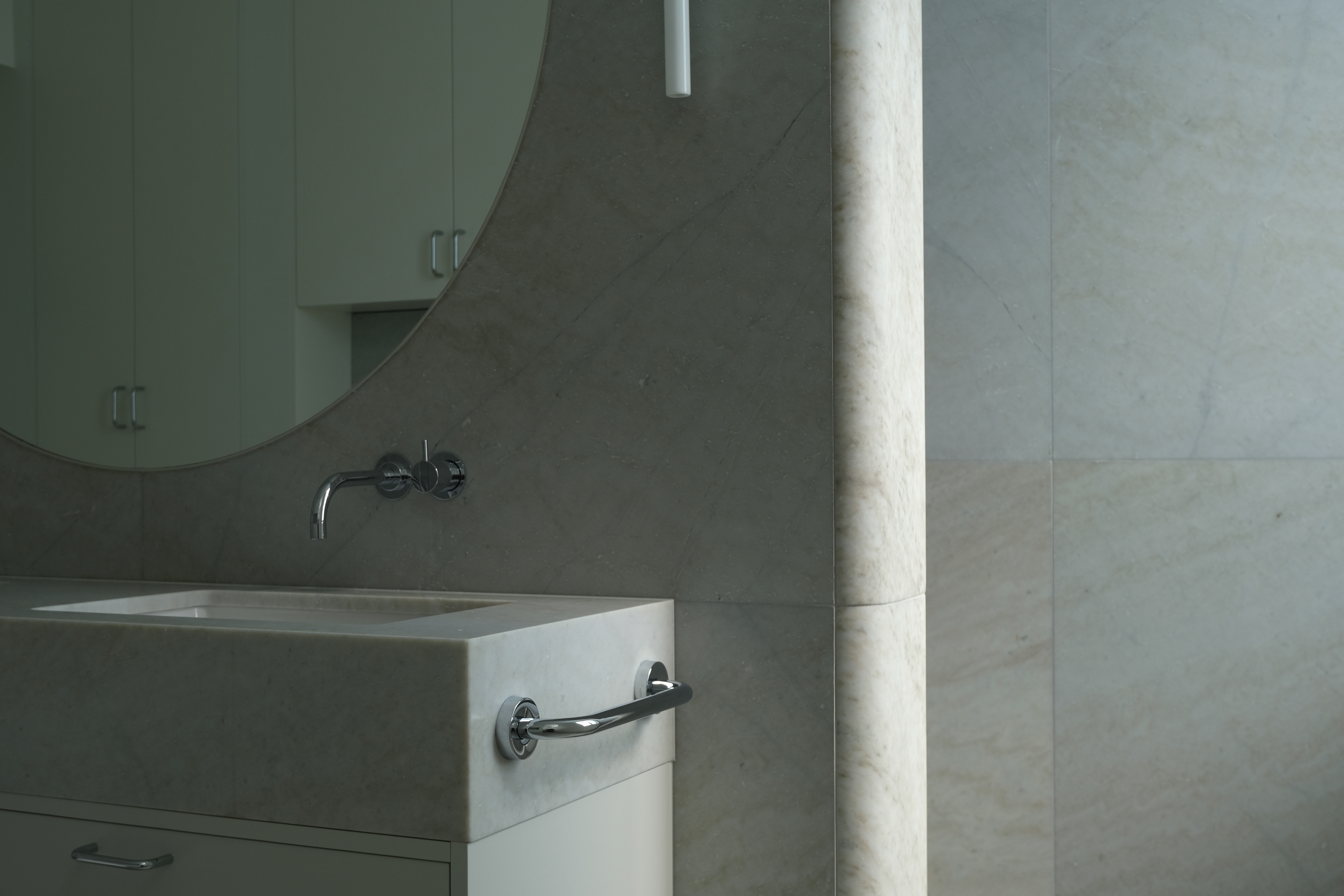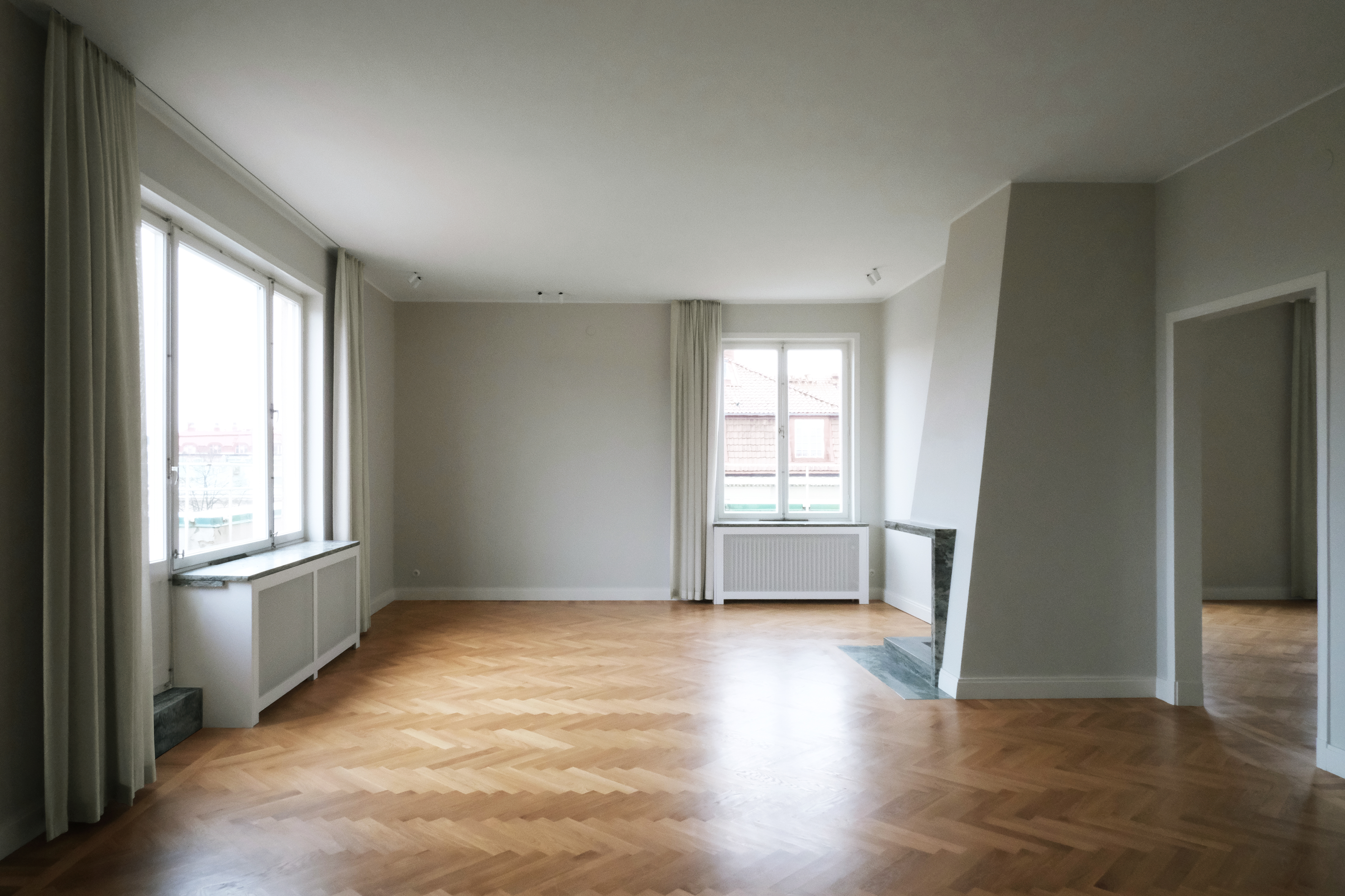 Restaurering och ombyggnad av en takvåning. Master bedroom med tillhörande klädkammare och badrum placeras i en avskild del av våningen, med nya balkongdörrar ut mot takterrassen. Köket flyttas så det ansluter till matsalen och salongen och dess utgång mot takterrassen. Köket och matsalen blir en del av våningens sociala ytor tillsammans med vardagsrum och bibliotek. Två sovrum och badrum förläggs i en bortre, mer privat del av våningen.